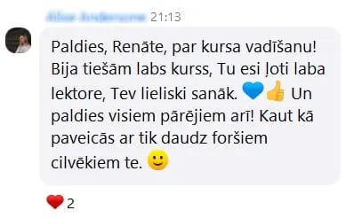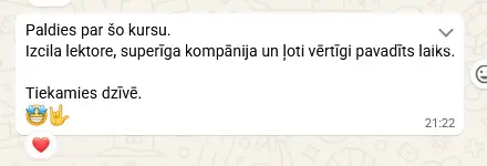 🙋♀️ Pasniedzēja atbalstu visu kursa laiku – gan lekcijās, gan ārpus tām